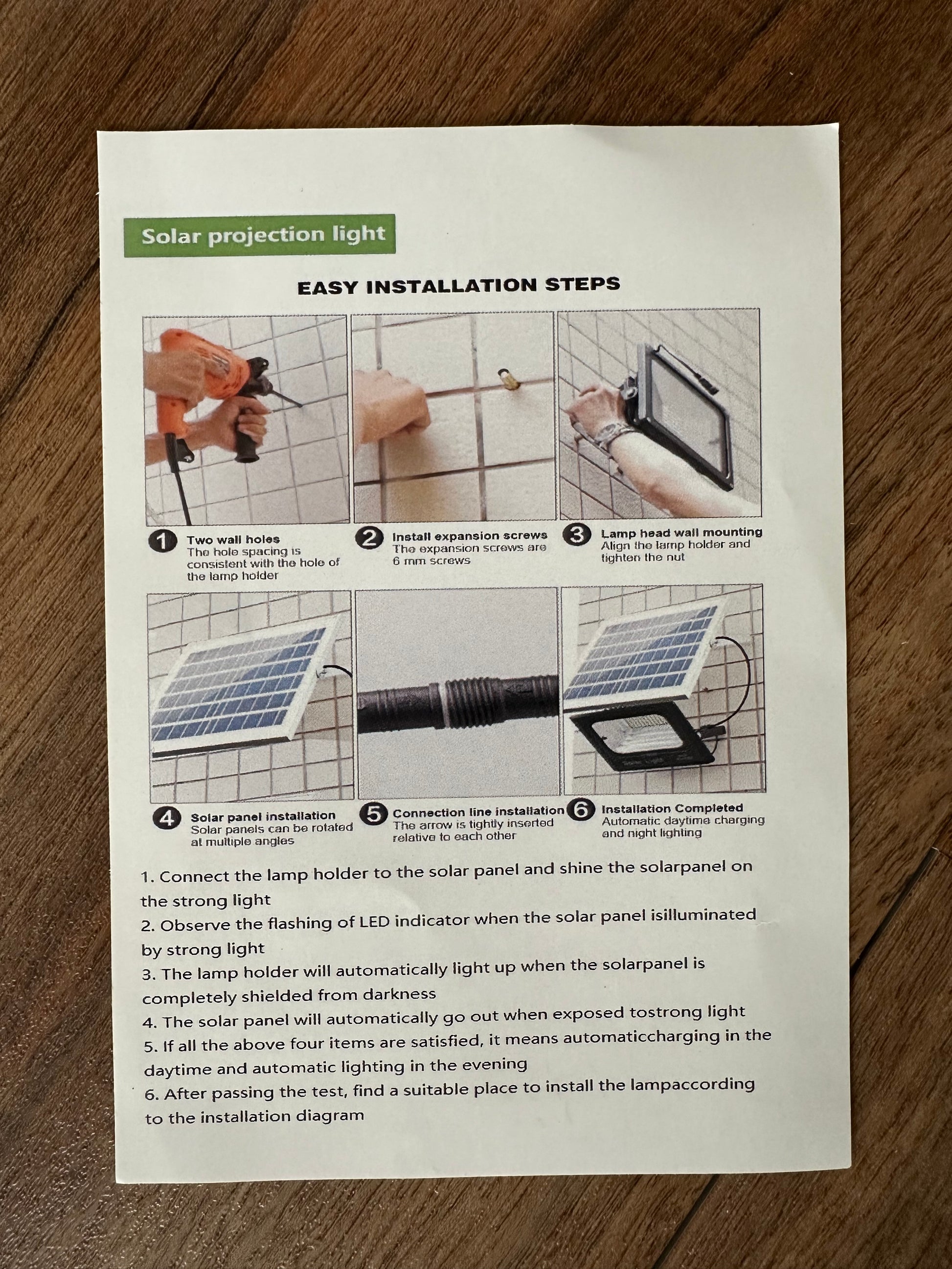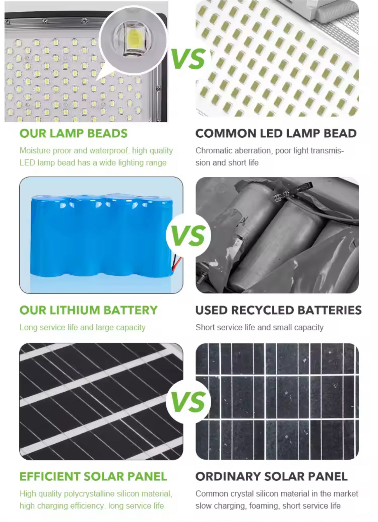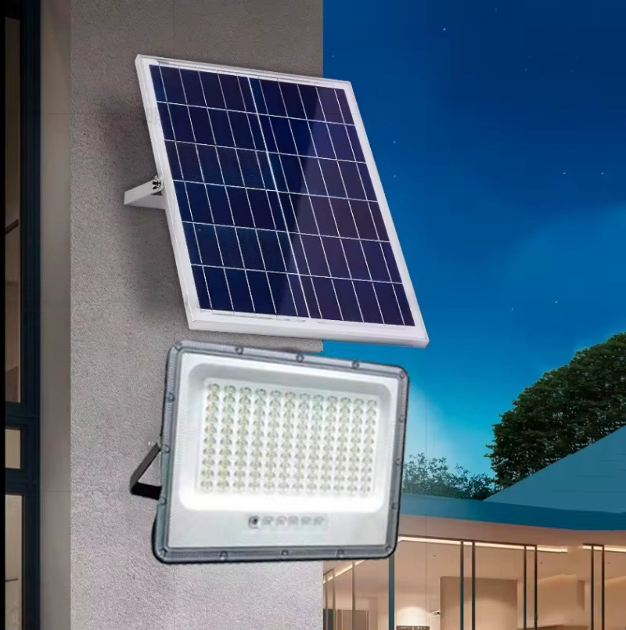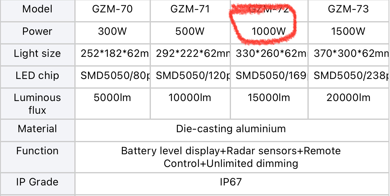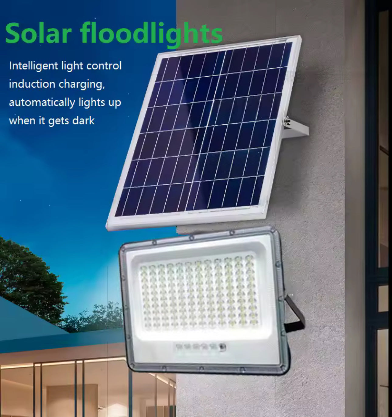Solar Flood Light, 1000W, LED chip: SM5050/169, white light, 15000LM, motion sensor, IP67 waterproof, weatherproof, battery level display, remote control, polycrystalline silicon solar panel, illuminates 1,800-2,400 sq. ft., die cast aluminum lamp body, 5 meter cord. Perfect for security lighting for your driveway, backyard, pathways, courtyard, parking lot, and at the cottage.