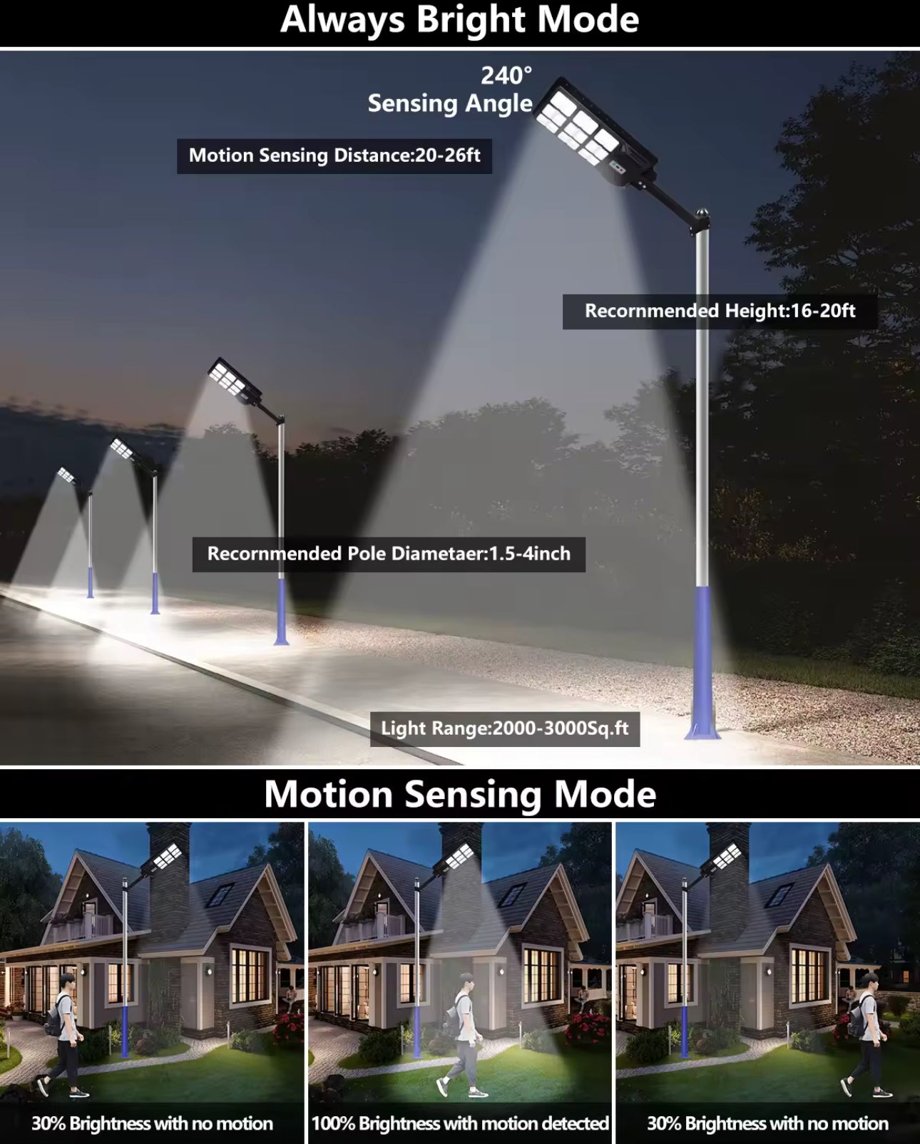 GZM Solar Street Light with Motion Sensor, 2000W
